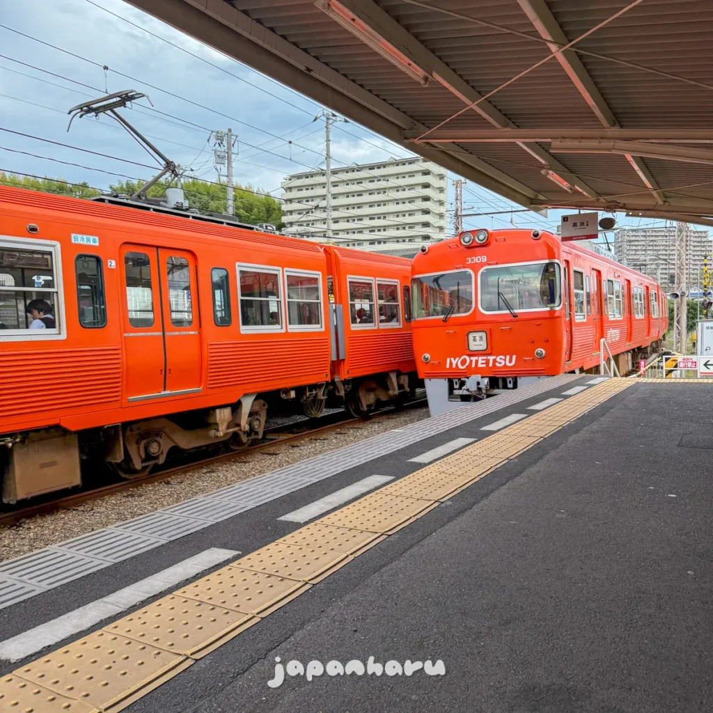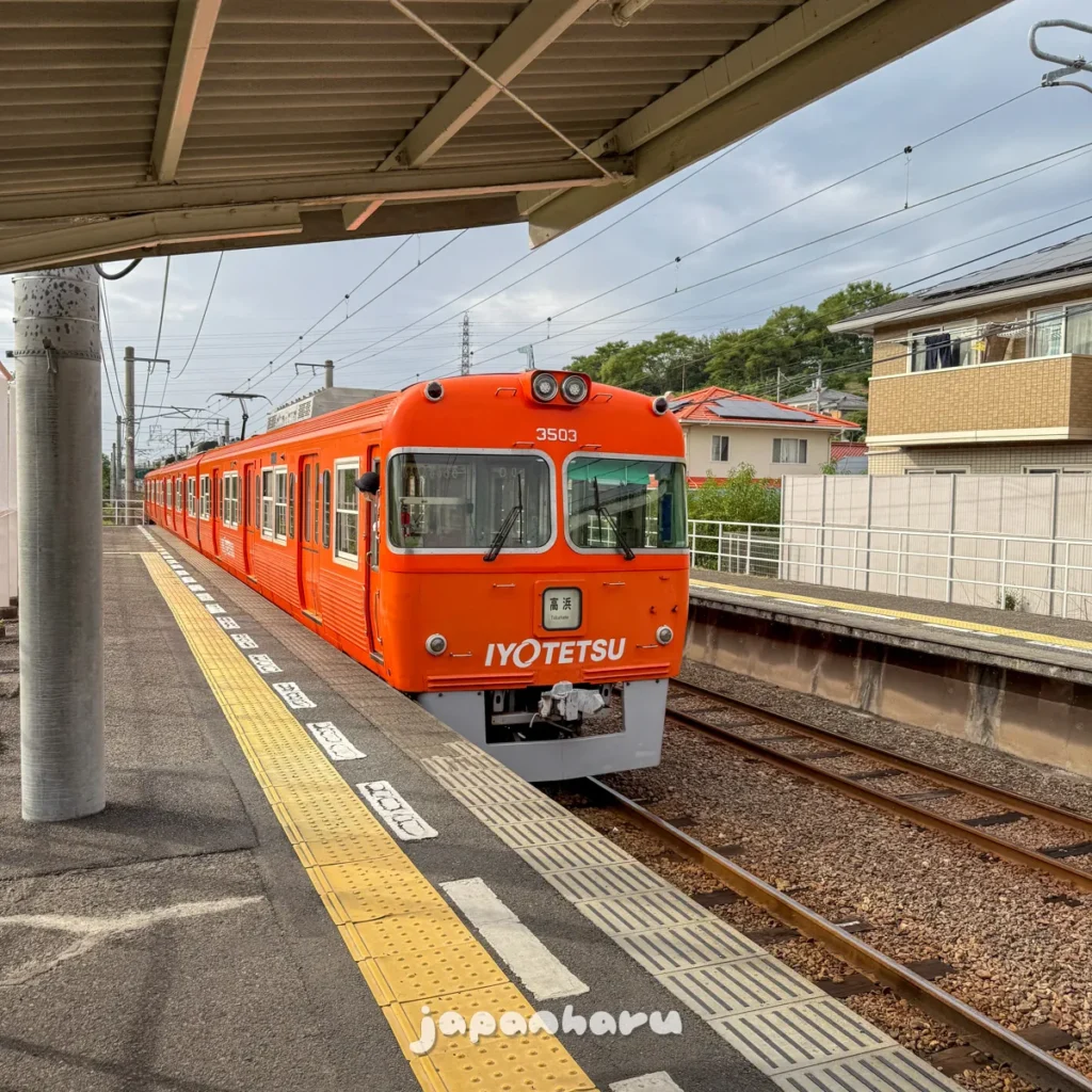 마쓰야마시역에서 교외선을 타고 왔어요.