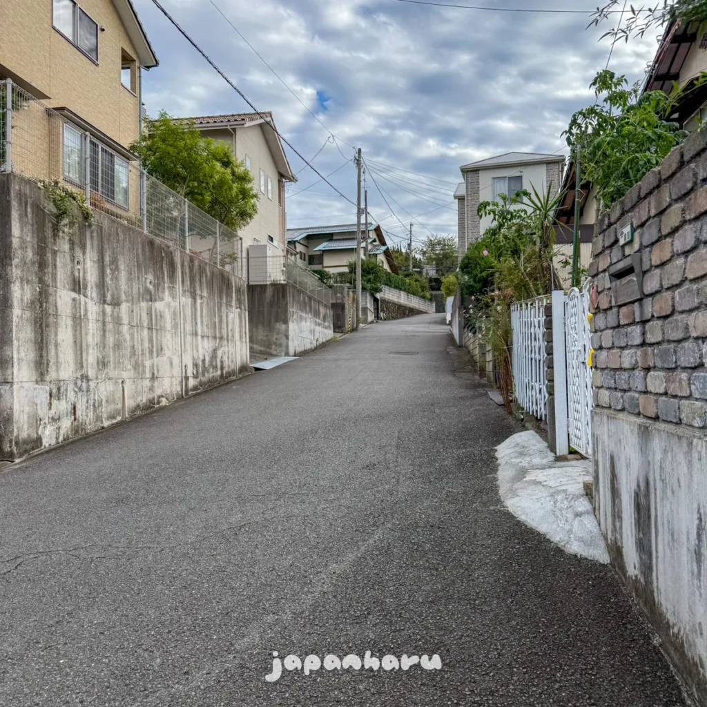 경로를 따라서 언덕을 따라서 주택가를 걸어서, 계단도 올라가고 중간에 시모노세키에서 본 듯한 느낌의 붉은 신사도 지나면 본격적인 입구가 나와요.
