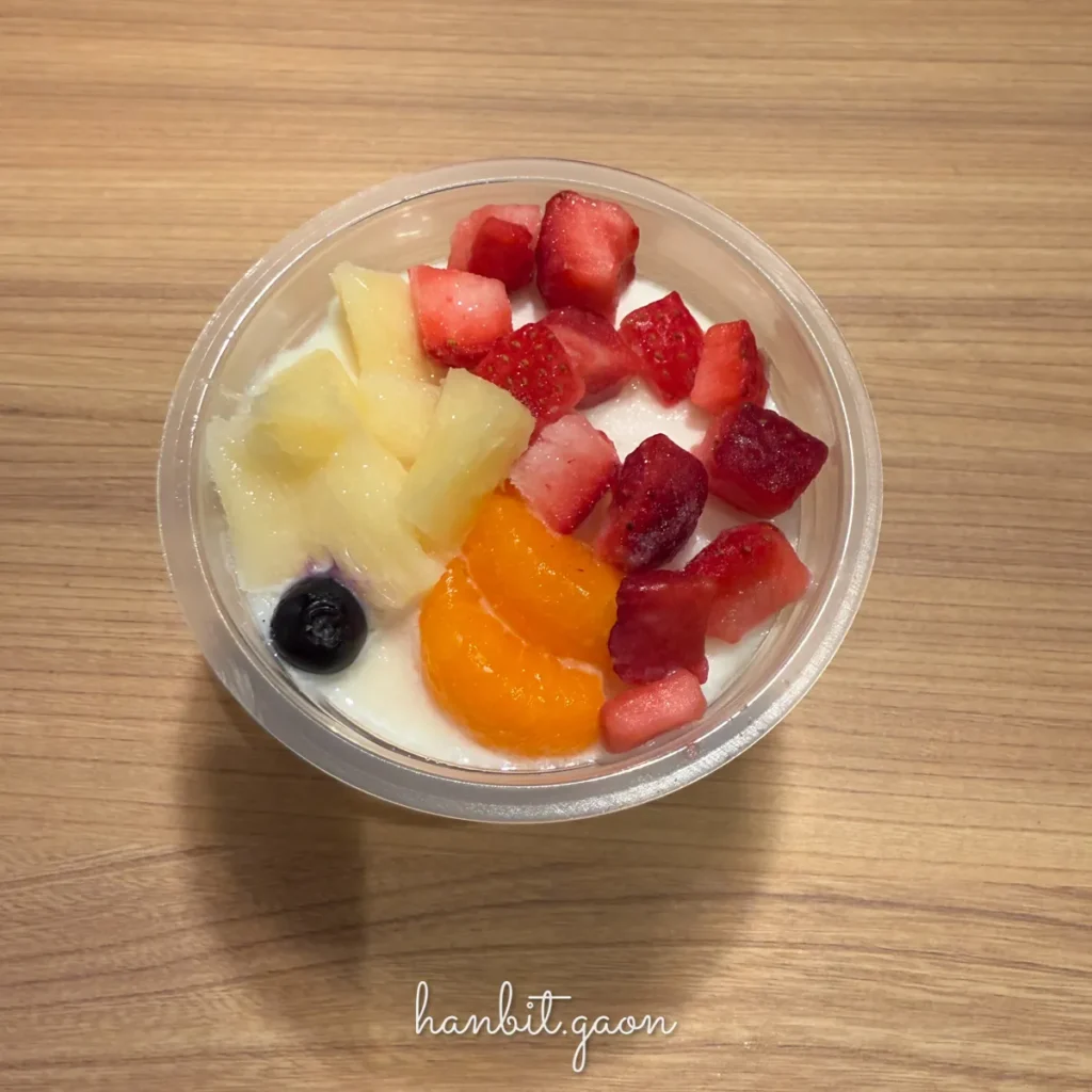 찾아보니 홋카이도산 연유를 사용해서 만든 연유얼음과 함께 4가지 과일이 들어 있다고 해요.