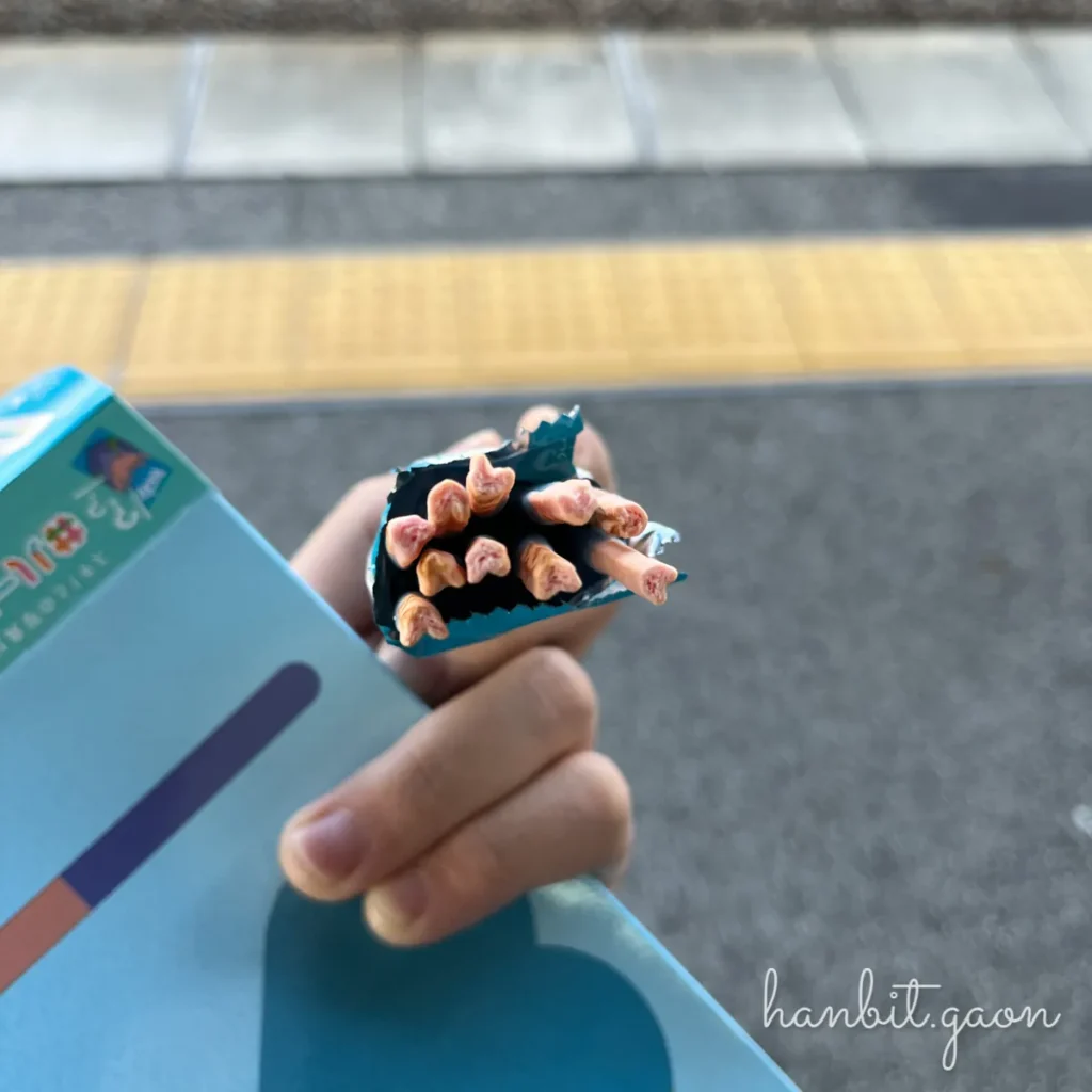 일본에서 본 단면이 하트 모양인 하트풀 포키 블루베리맛 2025년 05월 21일 일본의 맛을 찾아서 댓글 없음 이전 사이트에서 옮겨 작성한 게시글이에요!(작성일과 실제 방문일이 많이 차이날 수 있어요…)🚃 열차를 타러 가서 열차가 오기 전까지 잠시 간식타임을 가졌어요 ㅎㅎ역에 들어오기 전에 편의점에서 구입한 블루베리맛 포키!‘왜 하트풀이지…?’하고 있었는데, 열어보니 그 이유 하나를 알 것 같아요.🥢 두 명이 사이좋게 나눠 먹을 수 있게 작은 포장 2개로 나뉘어져 있어요.💕 그리고 ‘하트풀’이라는 이름답게 포키 단면모양이 하트 모양이에요 ☺️👍맛은 무난히 괜찮았어요!(생각보다 맛있어서 오사카에서도 하나 사 먹은 건 비밀 🤣) 댓글 없음0