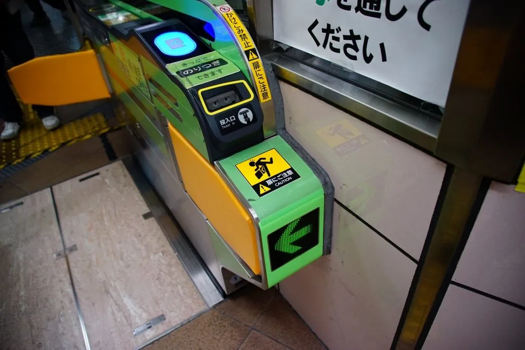 (종이 승차권을 이용할 경우, 아래의 연두색 환승용 개찰기를 이용해서 나가면 간접환승이 가능한데, 30분 내에 환승을 해야 해요!)