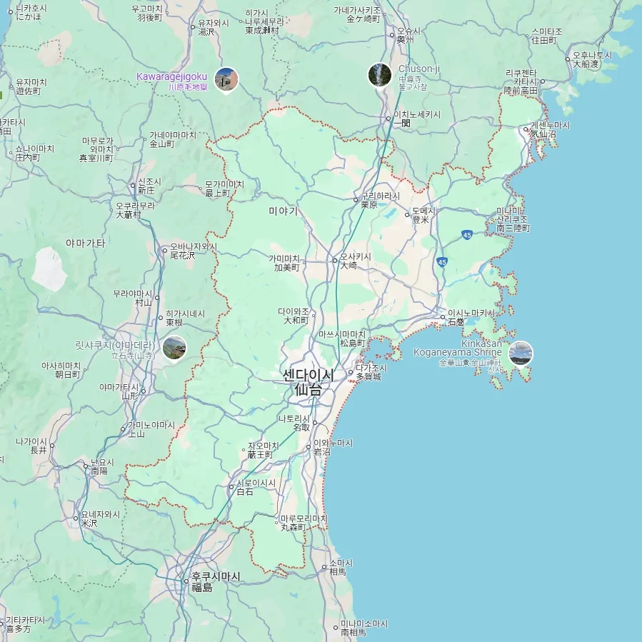 대표적으로는 직항편이 있는 센다이가 있고, 그 외에도 여러 도시가 있어요.