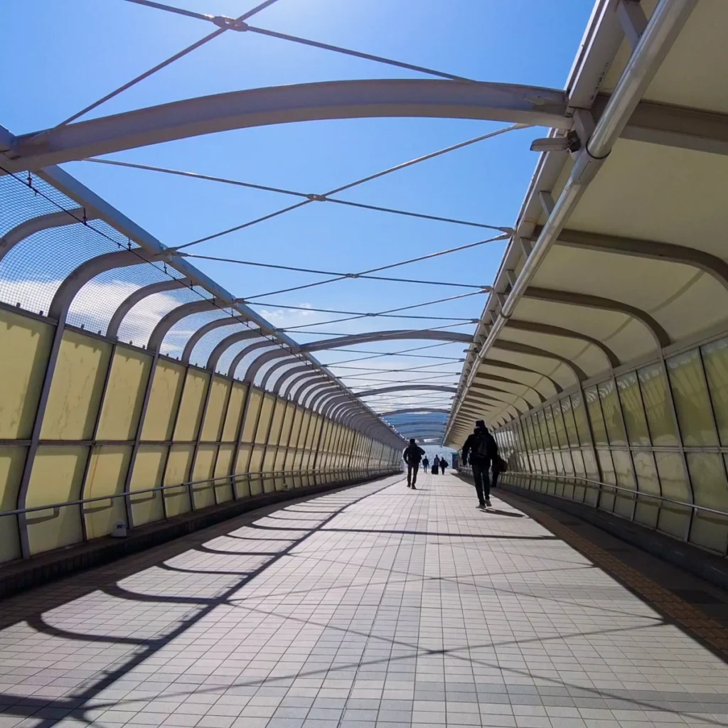개찰구로 나가려고 한 층을 올라가는데 저 멀리 아카시 대교가 보이네요.
