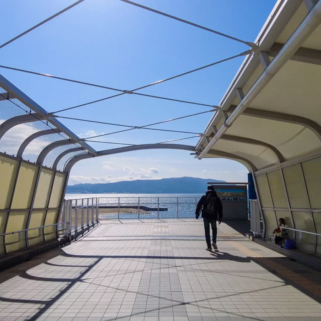 이 역은 시코쿠에 있는 시모나다역처럼 바다와 완전히 맞닿아 있는 역은 아니지만, 비교적 가까이 바다가 보이는 역이기도 해요.