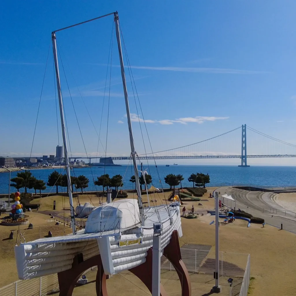 어느 날, 여느 때처럼 여행지 탐색을 하면서 구글지도를 보다가 보게 된 해수욕장 가까이서 보이는 거대한 현수교의 모습을 보고 가보고 싶어진 곳인데 원래는 아카시 대교를 건너서 아와지 섬에 있는 대관람차도 타 보고 싶었지만 시간상 방문하지는 못했어요…