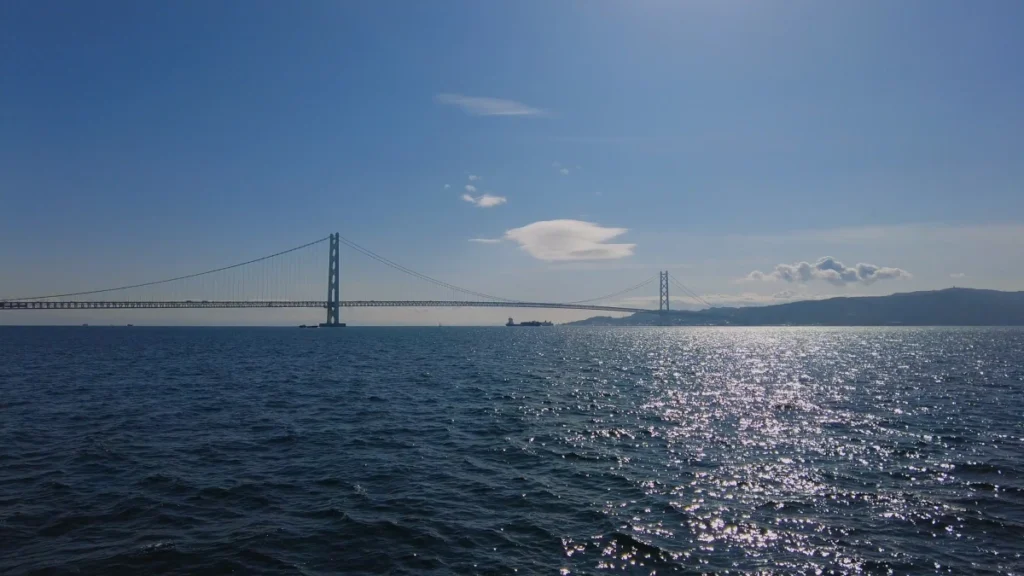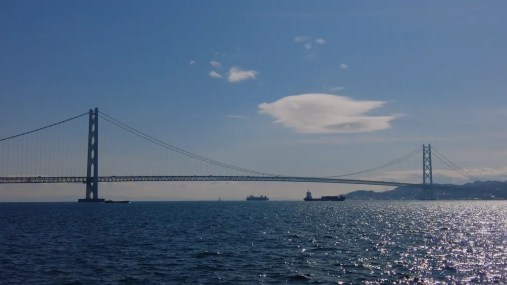 아카시 대교는 예전에는 세계 1위, 현재는 세계 2위의 길이인 현수교에요.