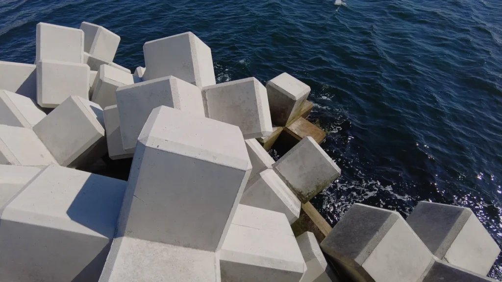 테트라포드라 불리는 우리나라의 방파제 구조물과는 조금 다른 모양이네요.