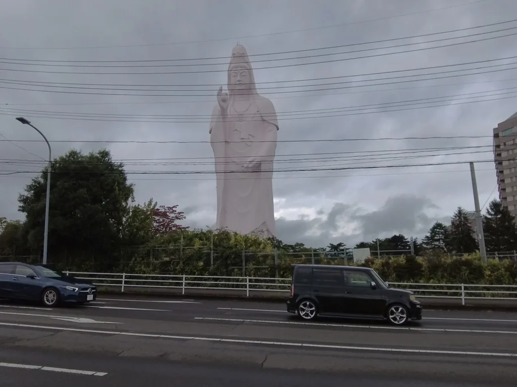 센다이시 100주년을 기념해 100m 높이로 만들어졌다는 센다이 대관음은 주변 사람들에게는 흉물이라고 평가받기도 하는 듯 해요…