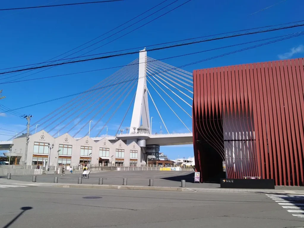 아오모리역에서 가깝고 가벼운 마음으로 올라가서 주변을 구경할 수 있는 다리, ‘아오모리 베이브리지’에요.
