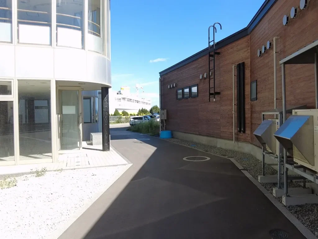 저 사각형 건물은 아오모리현의 네부타 축제에 쓰이는 네부타를 전시해놓은 전시관 ‘네부타의 집 와랏세’에요.