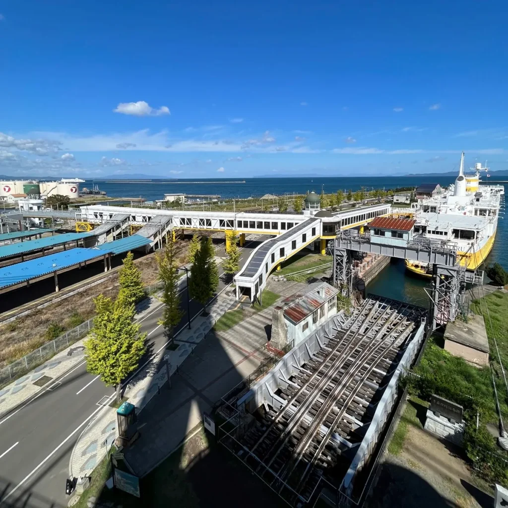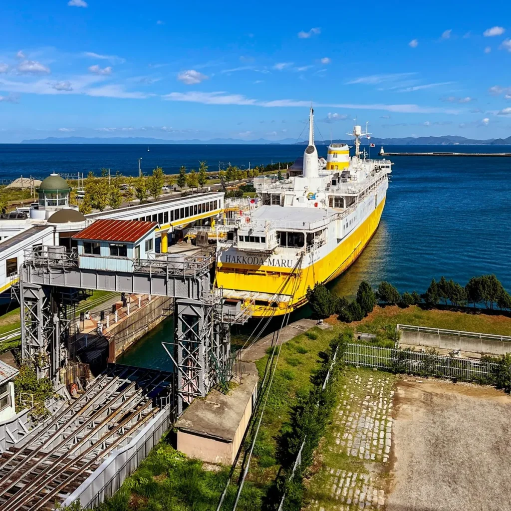 여기 보이는 핫코다마루는 세이칸연락선이라고 해서 현재의 혼슈-홋카이도를 잇는 해저터널인 ‘세이칸 터널’이 개통되기 전에 혼슈의 아오모리와 홋카이도의 하코다테를 오가며 열차와 사람들을 이동시켜주던 배에요.