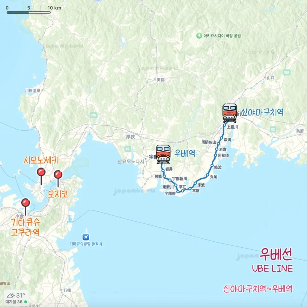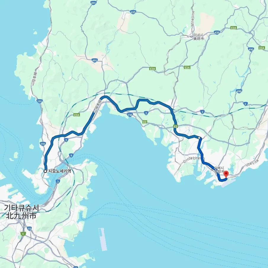 📍 구간: 시모노세키→우베(산요 본선) / 우베→구사에(우베선)