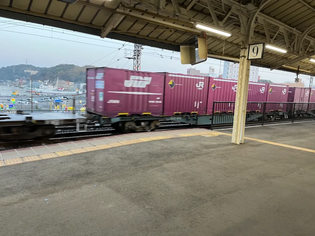 일본에 몇 번 왔었지만 화물열차가 지나가는 것을 본 것은 처음인 것 같아요.