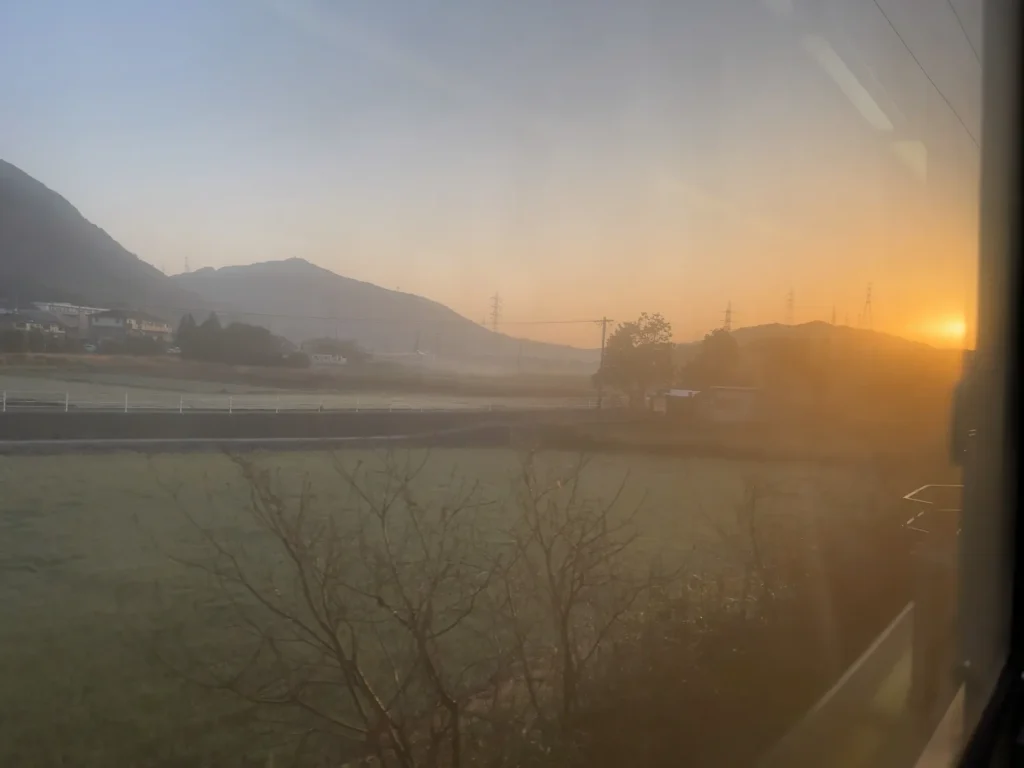 해가 뜨는 시점에 열차를 타고 이동하는 게 처음인 것 같네요.