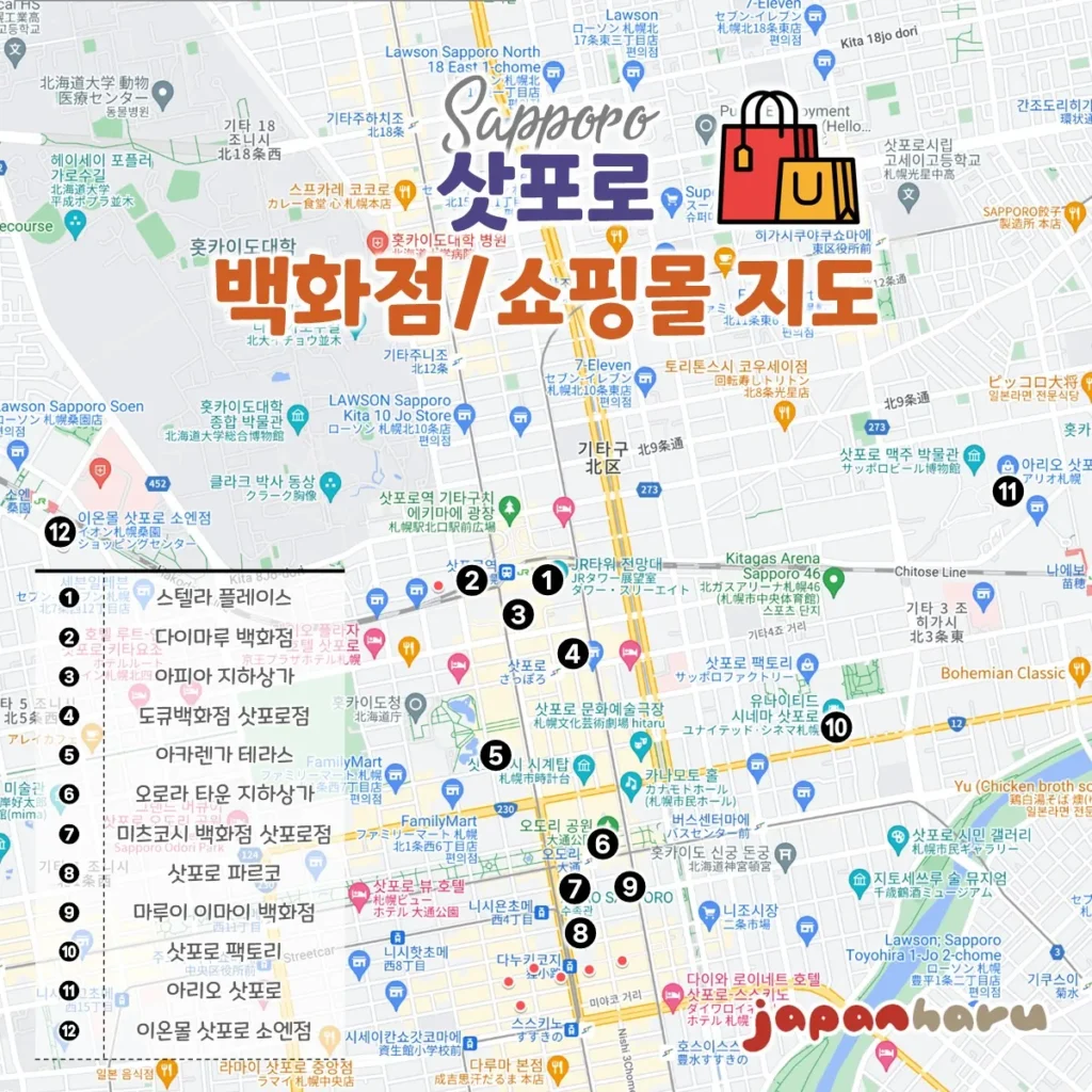 💬 삿포로에 위치한 쇼핑몰과 백화점을 정리해봤어요!