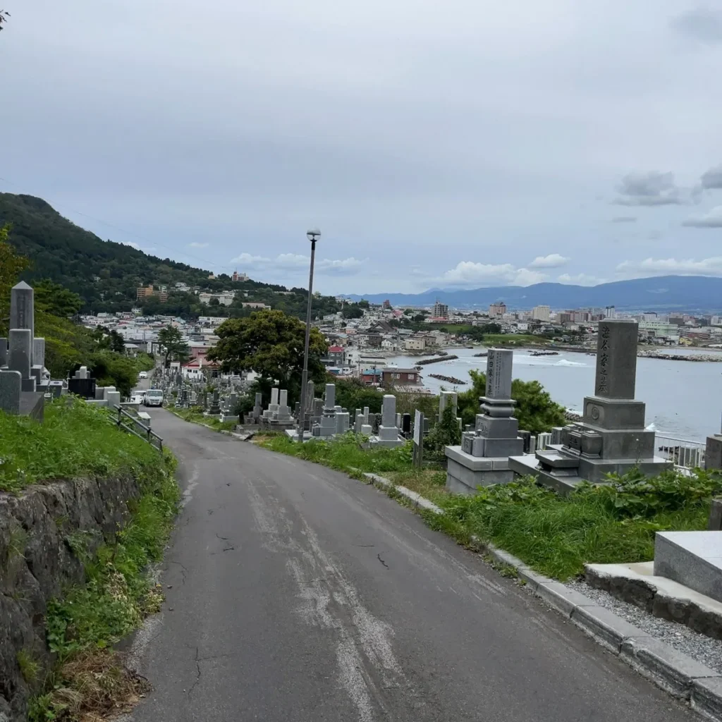 다시 야치가시라 정류장 쪽으로 가는 길에 아까 지났던 공동묘지 쪽에서 내려다보면 시내가 잘 보여요 ㅎㅎ