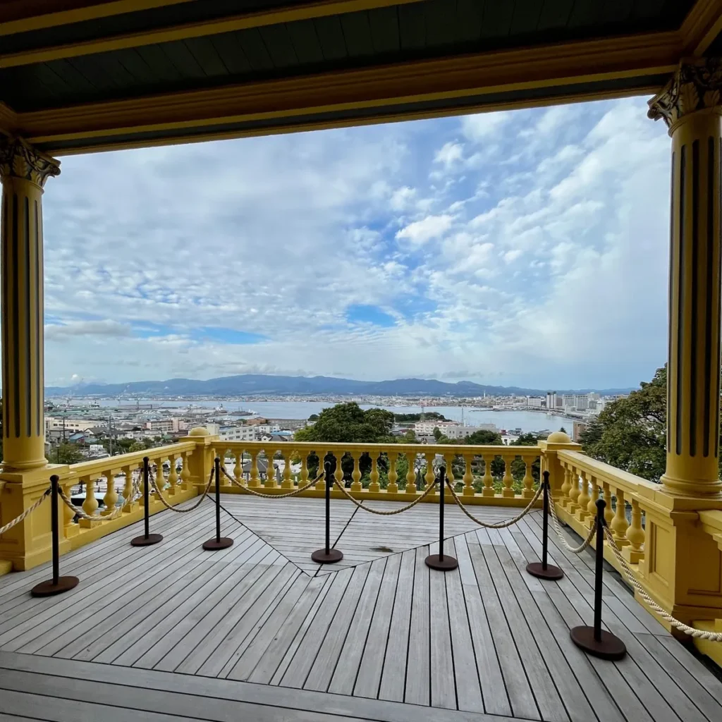 발코니 쪽으로 나가보면 이렇게 모토마치 공원보다 높은 위치에서 하코다테를 내려다 볼 수 있어요 ㅎㅎ