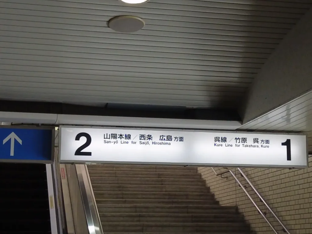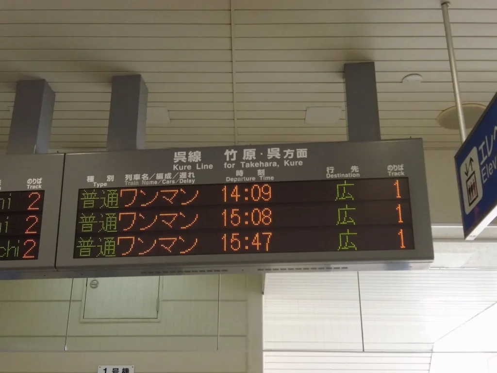 타다노우미역으로 가는 구레선을 타려면 1번 승강장으로 가야하네요.