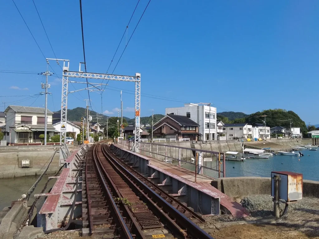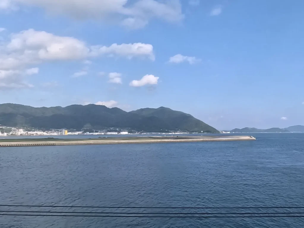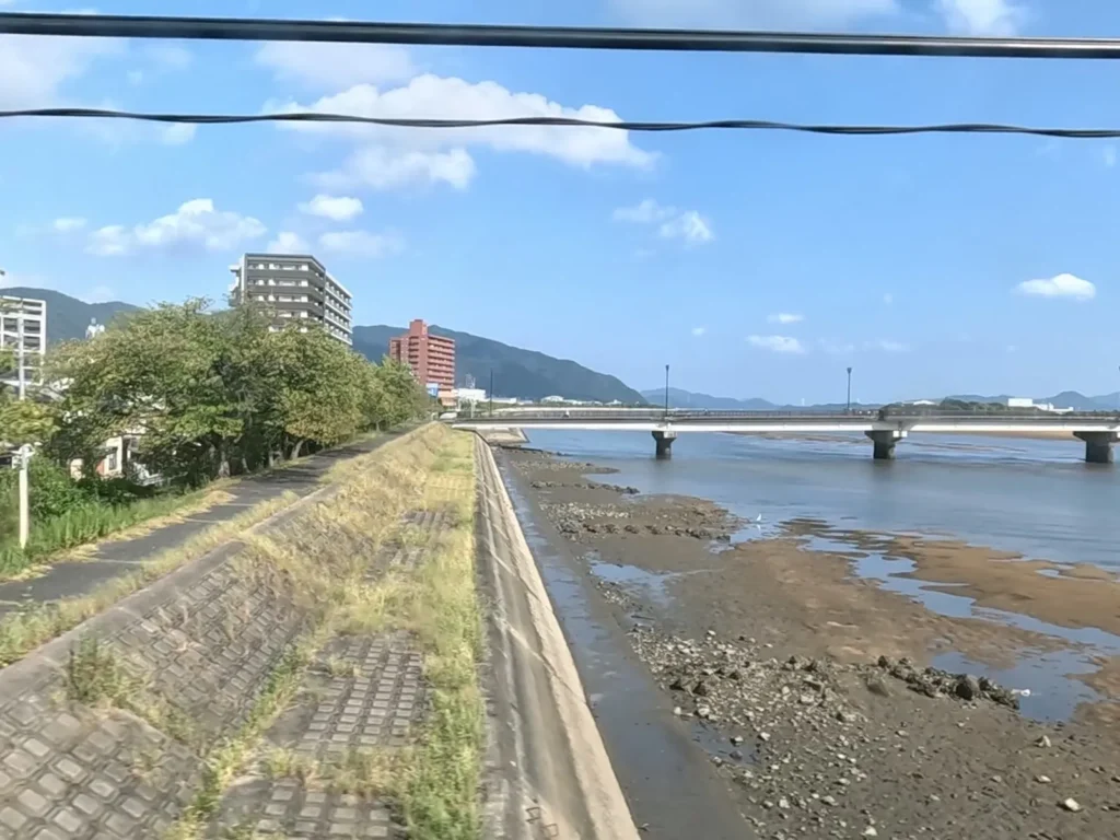 구레선은 미하라역을 출발해서 시내를 지나 강 같이 생긴 곳을 지나면 바다가 보여요 ㅎㅎ