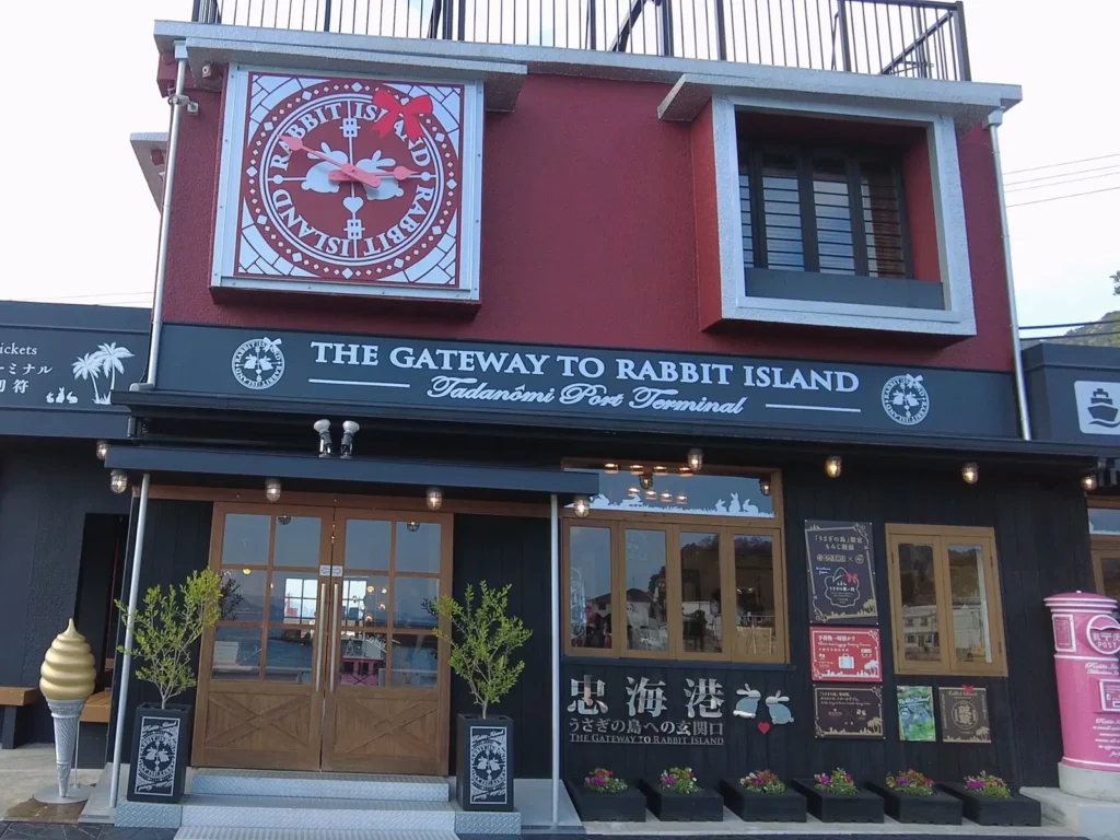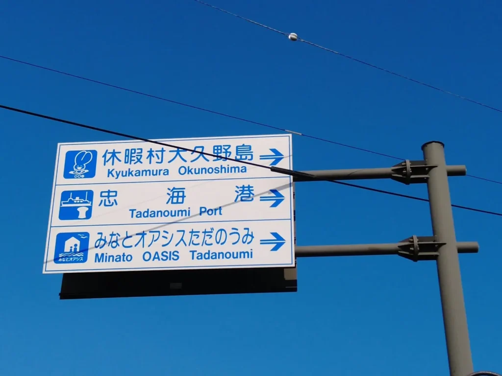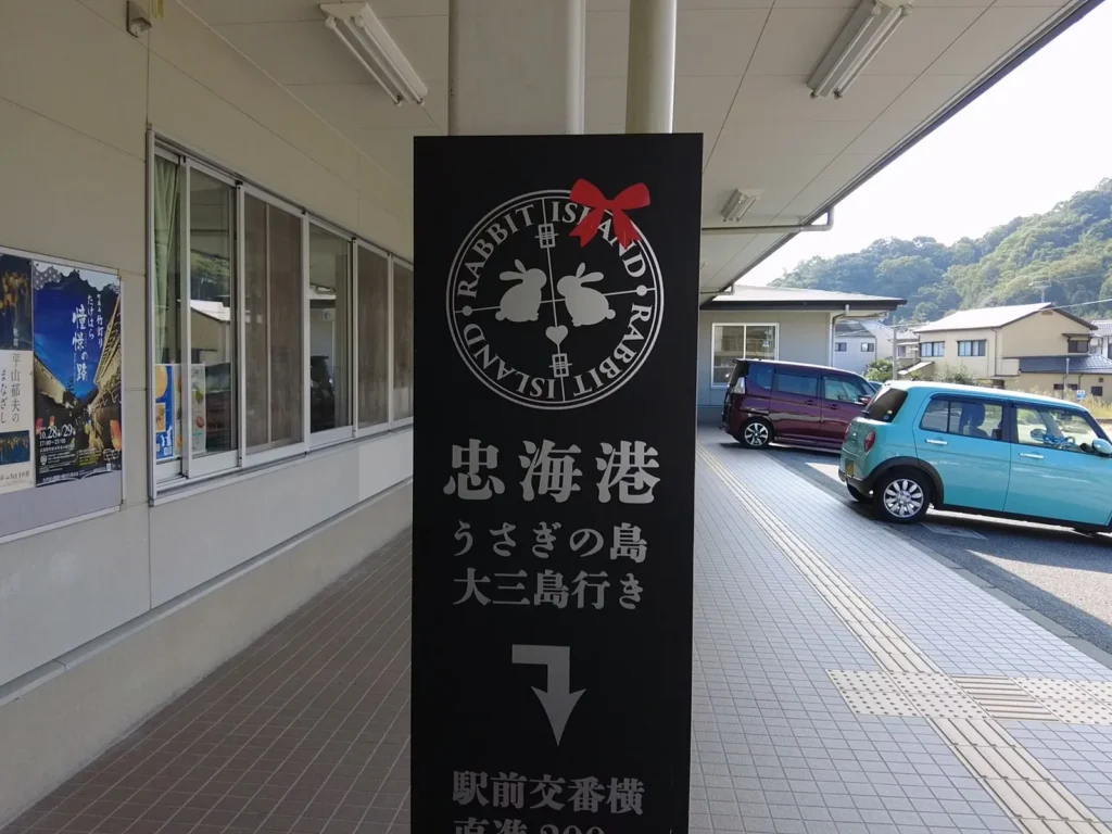 토끼섬으로 가는 배를 타려면 역에서 3~5분 정도 걸어서 타다노우미항으로 가야해요.