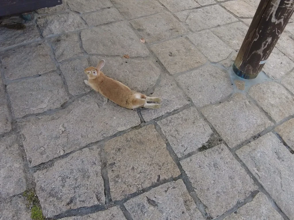 전쟁이 끝나고 난 이후에 독가스/최루가스 등을 다 처분하고 정화하는 과정에서 쓴 방법 등으로 섬의 생태계가 무너졌는데 1970년대에 섬 근처의 초등학교에서 사육하던 토끼 8마리를 방생한 이후로 어마한 번식력을 가진 토끼의 능력으로 2013년 기준 700마리가 넘는 토끼가 있는 섬이 되었다고 해요.