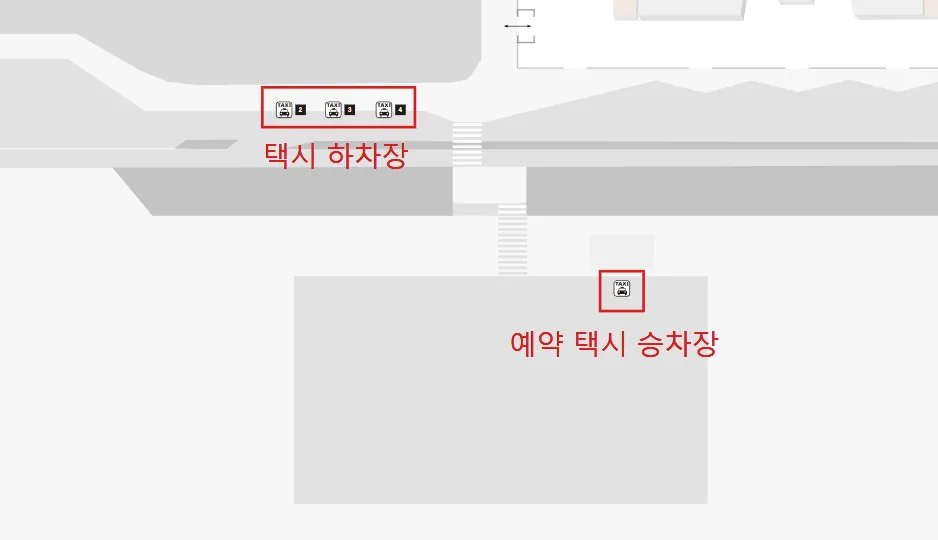 *예약 택시를 이용하는 분들은 터미널에서 나와 주차장 내에 있는 ‘예약 택시 승차장’을 이용해달라고 적혀있어요.