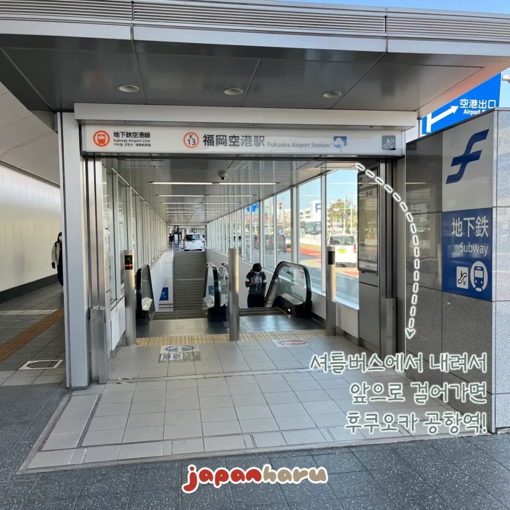 셔틀버스를 타고 국내선 터미널로 가서 후쿠오카공항역에서 지하철을 타요.