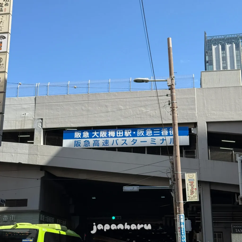 승차: 오사카 한큐3번가(한큐고속버스터미널)