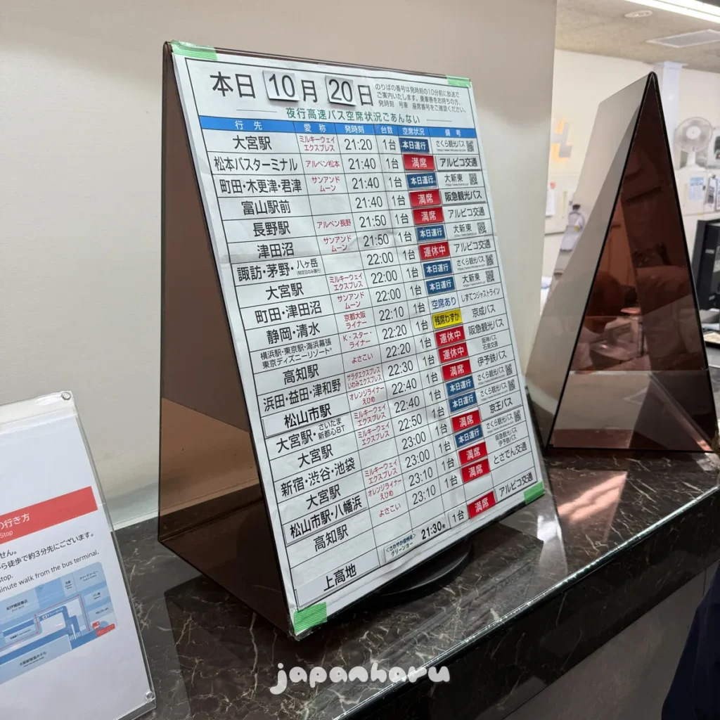 탑승은 한큐3번가에서 했는데, 실제로 가보니 정식 이름은 ‘한큐고속버스터미널’이에요.