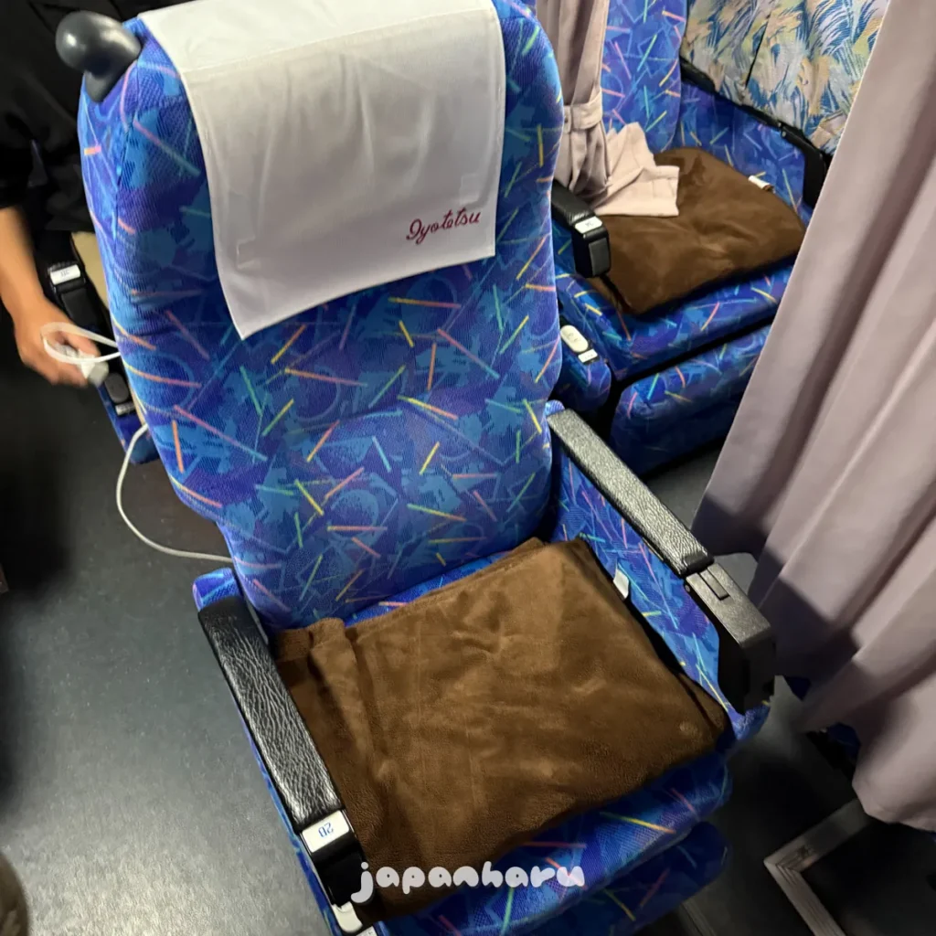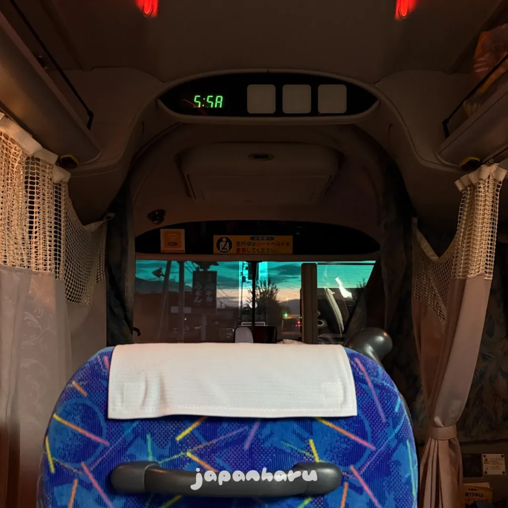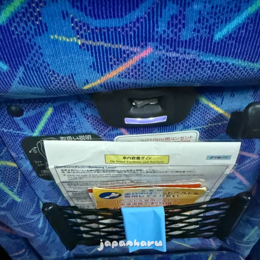 오사카-마쓰야마 노선은 고속버스와 야간버스 모두 있는 노선인데, 주간편(고속버스)은 좌석 사이의 커튼이 없고 야간편(야간버스)은 좌석 사이의 커튼이 있는 차이에요.