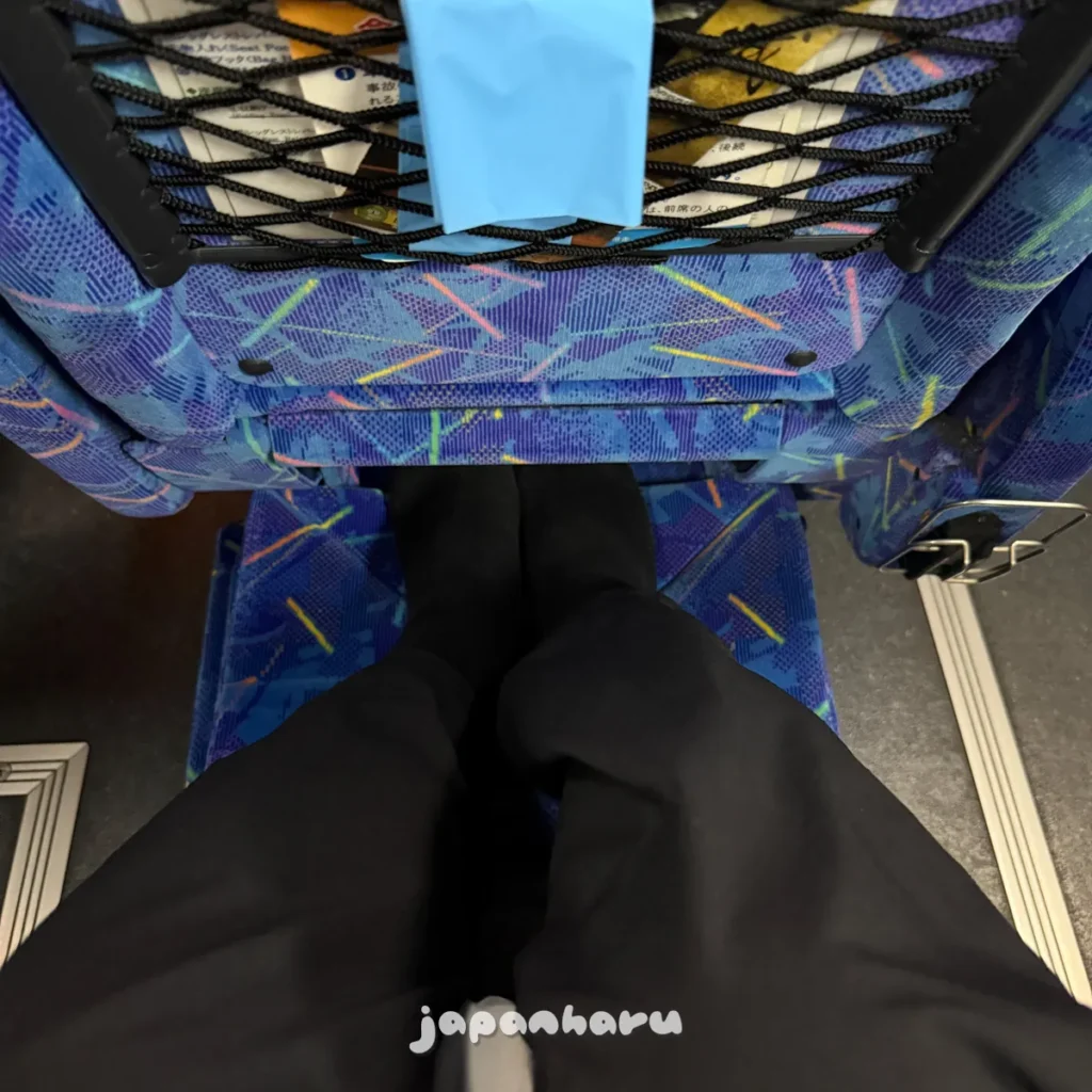 좌석에는 저렇게 풋레스트가 있어서 저걸 내리고 발을 올려둘 수도 있어요.