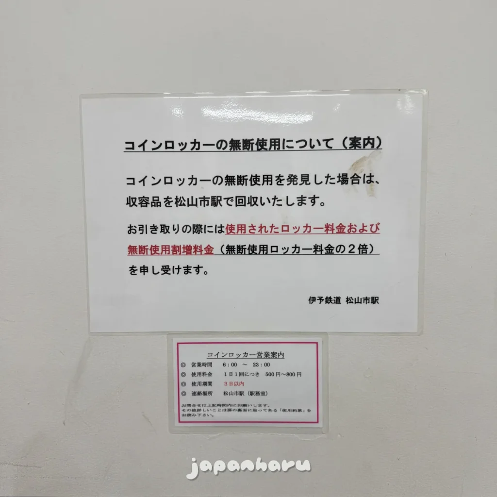 마쓰야마시역 지하1층 개찰구 옆에 코인로커가 있어요!