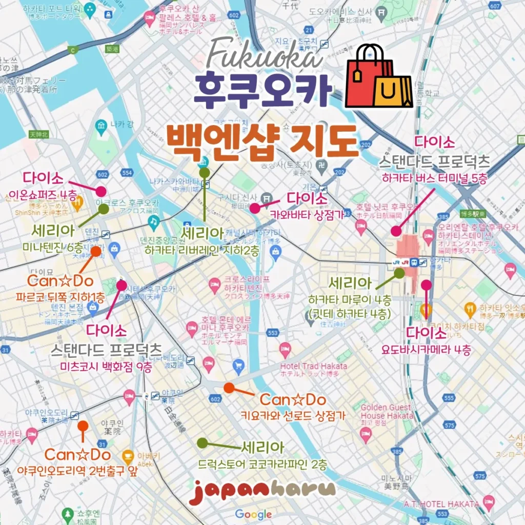 | 다이소 요도바시 하카타점 (ダイソー ヨドバシ博多店) | 10:00~21:00 | 요도바시카메라 하카타점 4층 [🔗구글지도] |