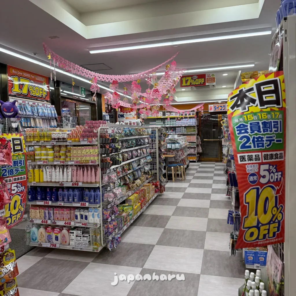 그러다가 역 가까이에 다이코쿠 드럭이 보여서 관심이 생겨서 가보기로 했어요.