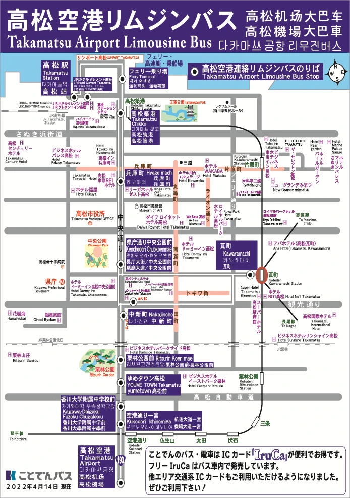 우리에겐 직항편이 있는 다카마쓰로 익숙한 카가와현은 JR시코쿠의 일부 역과 다카마쓰를 중심으로 하는 고토덴 전철과 버스에서 교통카드를 쓸 수 있어요.