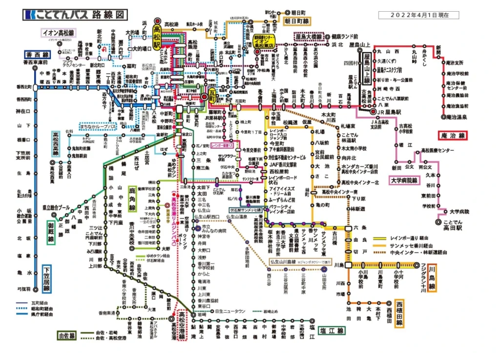 다카마쓰시를 중심으로 전철과 버스를 운영하는 고토덴의 전철과 버스 전체 노선에서 교통카드 이용이 가능해요!