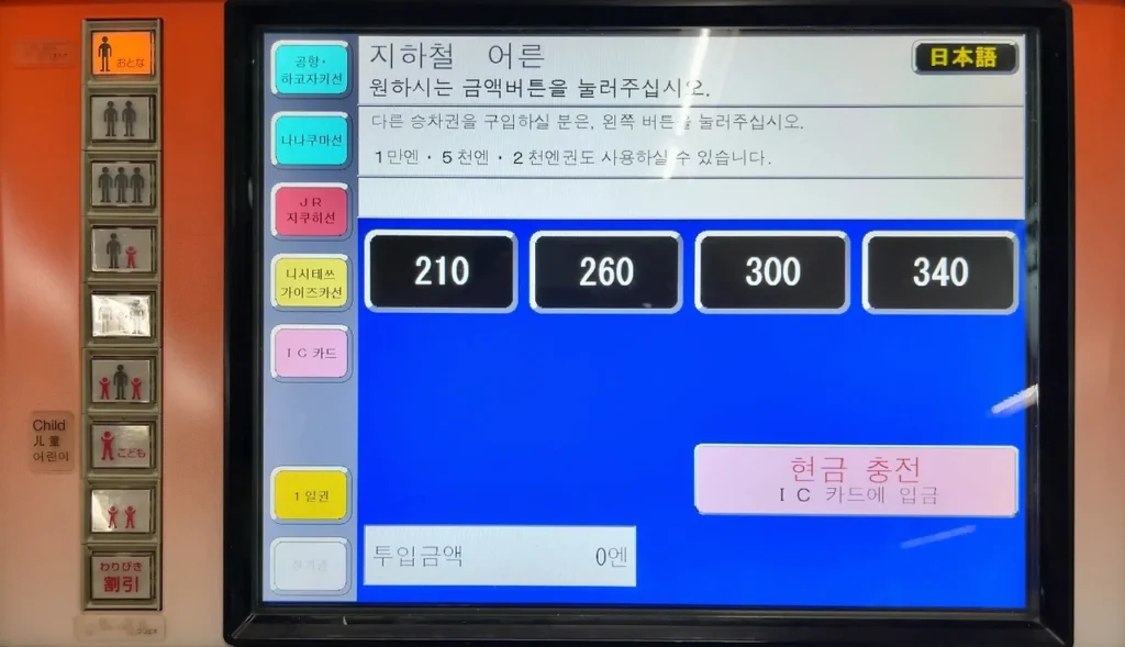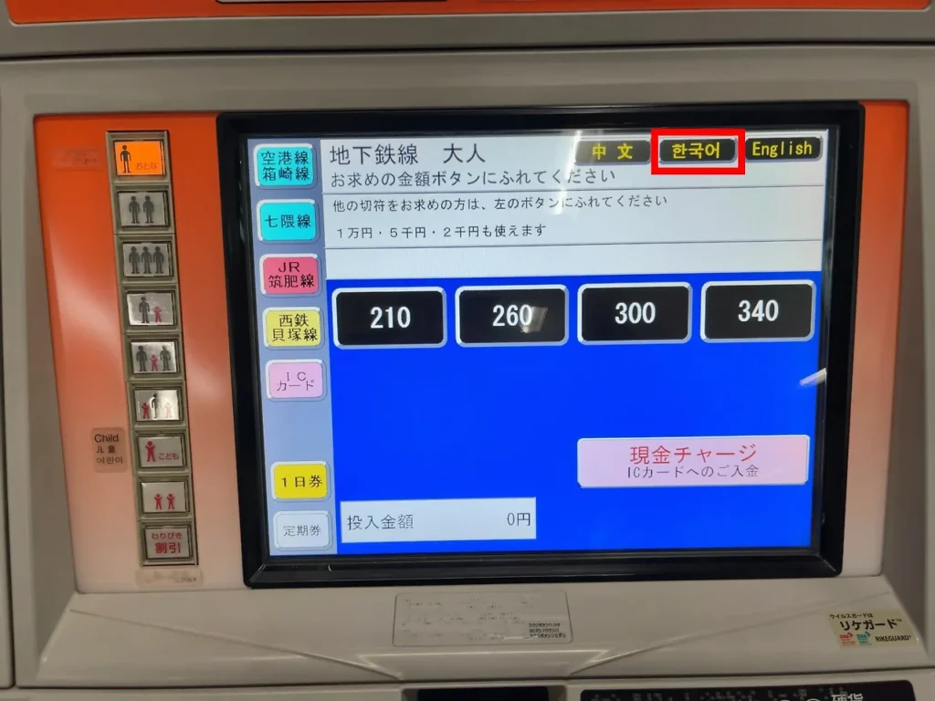 후쿠오카 지하철은 구간에 따른 요금인데, 최소 210엔부터 최대 340엔이에요.