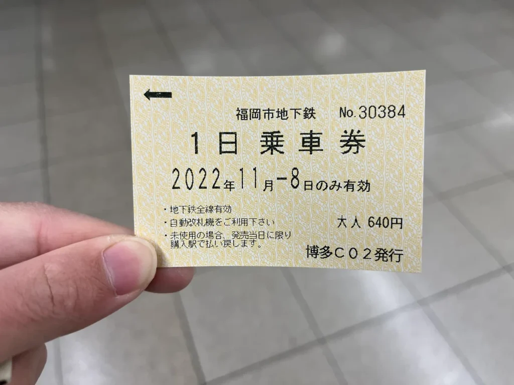 이번에는 후쿠오카 시내의 지하철인 ‘후쿠오카시 지하철’을 이용할 수 있는 ‘후쿠오카시 지하철 1일권‘이에요!
