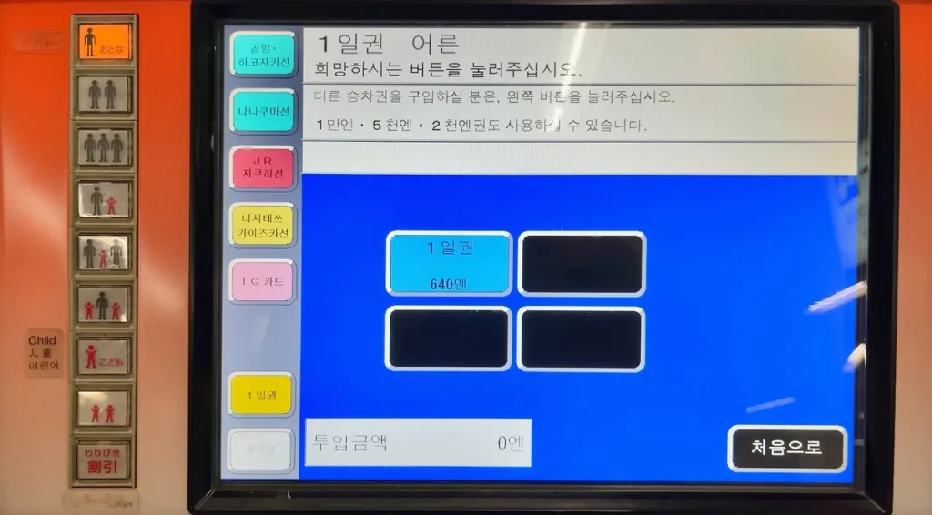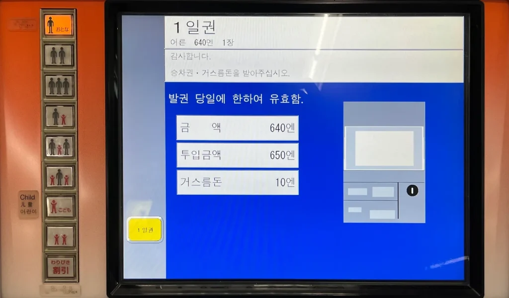 ⚠️ 역의 자동발매기로 구입한 1일권은 구입 당일에 한해 사용 가능해요!