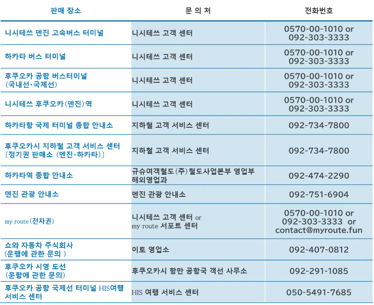 [후쿠오카 투어리스트 시티 패스 판매장소]