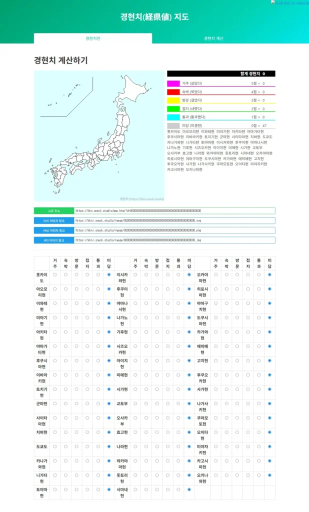 ‘경현치(経県値)’란 일본에서 지리를 좋아하는 사람들이 모여있다는 사이트인 ‘도도부현시구정촌(都道府県市区町村)’이라는 지리 정보 사이트에서 만들게 된 개념이에요.