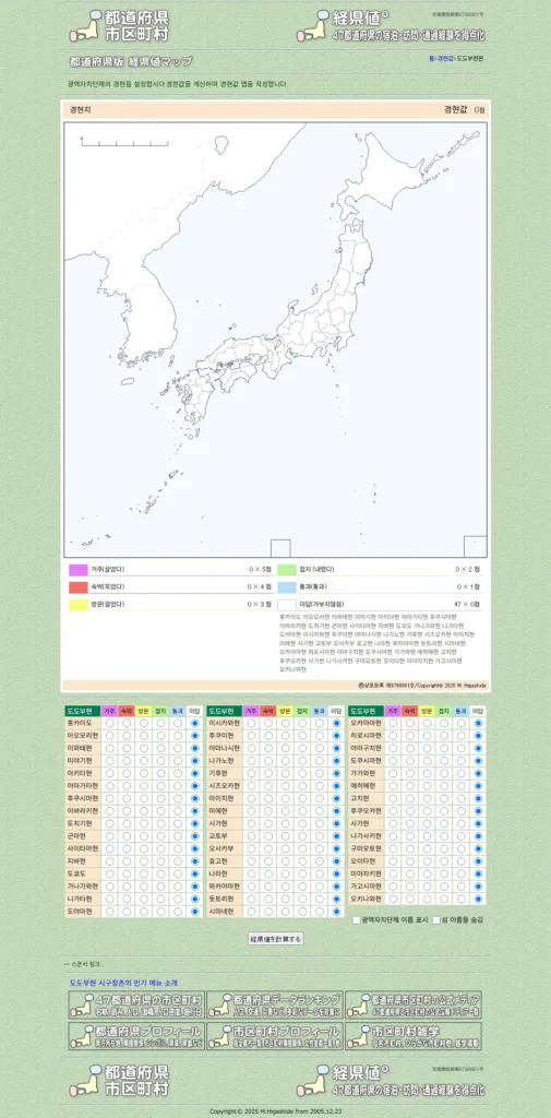 경현치 지도는 제가 확인한 것만 해도 3가지가 있지만, 기준은 모두 오리지널과 동일한 기준으로 도도부현 별로 0점에서 5점까지 매기는 방식이에요.