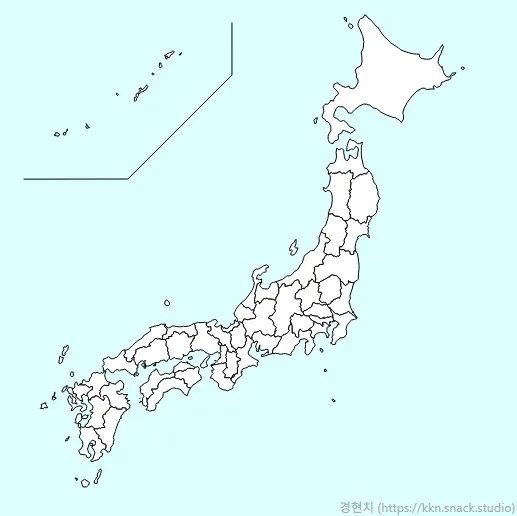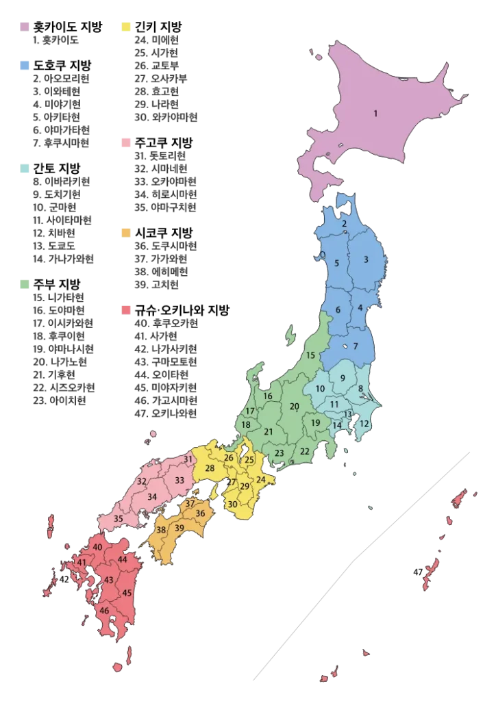 경현치 지도는 일본의 도도부현 단위로 지도에 색을 칠하는 지도이기 때문에 ‘도도부현’에 대해서 알 필요가 있어요.