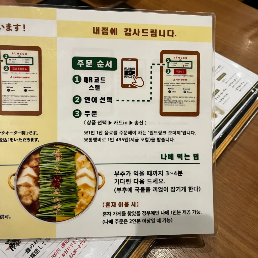 🍴 모츠나베 이치후지 하카타 메뉴