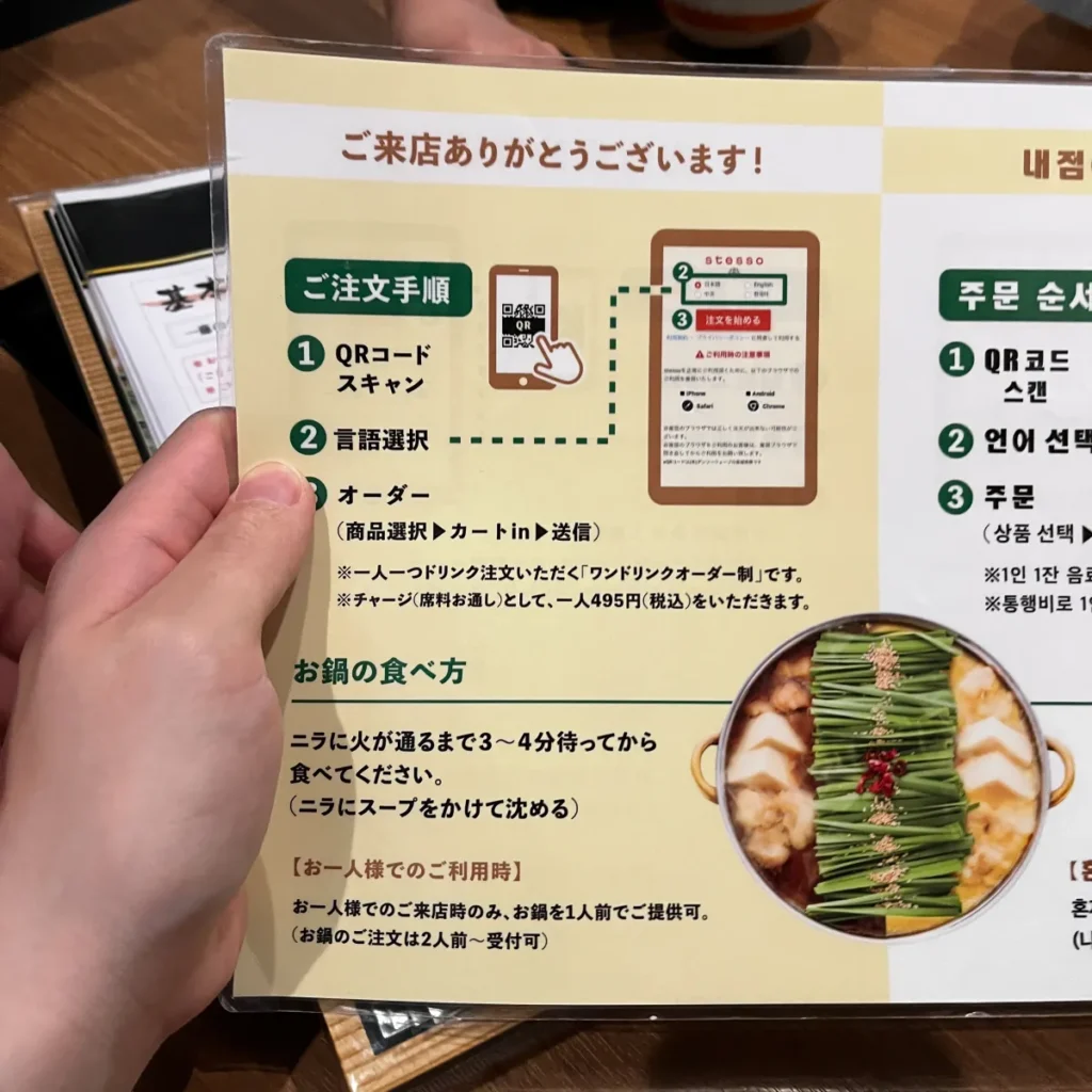 📱 최근 여러 가게가 도입하는 것처럼 QR코드를 찍고 주문하는 시스템이라 일어를 잘 못해도 어렵지 않게 주문이 가능해요.