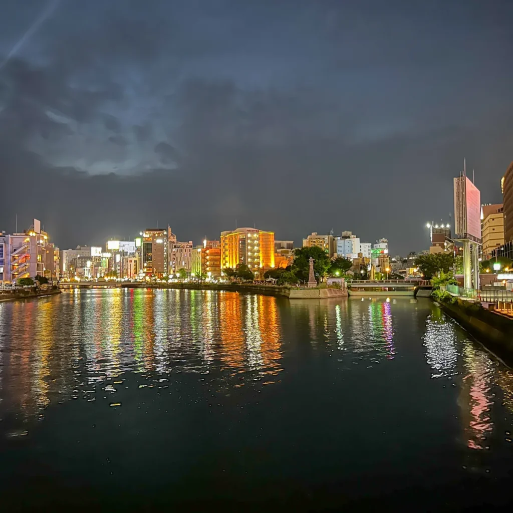 광각으로 찍어서 캐널시티, 나카스가 모두 보이게!