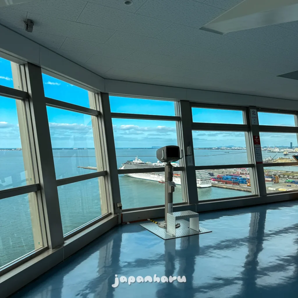 전망실만 구경하게 되는 일반 사람들은 모르지만, 전망실 바로 위에는 선박 무선국이라고 해서 항구에 출입하는 배의 움직임을 다른 배에 전달해주는 무선국 ‘하카타 포트 라디오’ 시설이 있어요.(공항 관제탑 같은 느낌!)