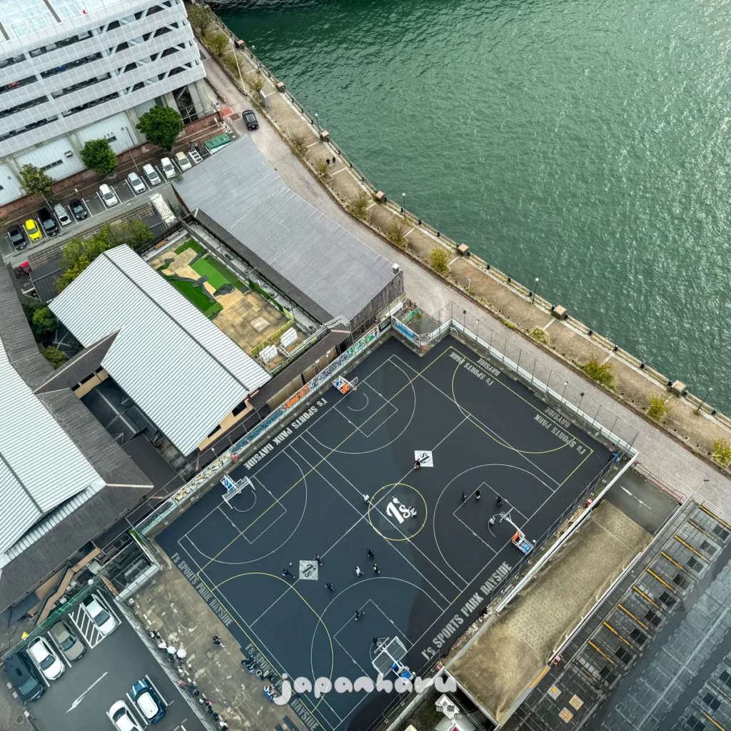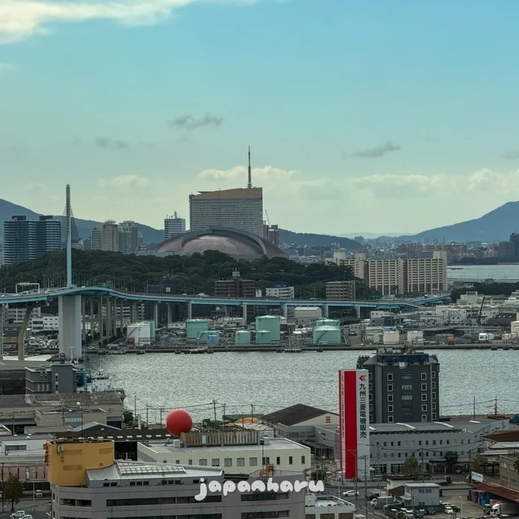 서쪽 방향으로 보면 저 멀리 힐튼 후쿠오카 씨호크와 함께 후쿠오카 페이페이돔이 보여요.