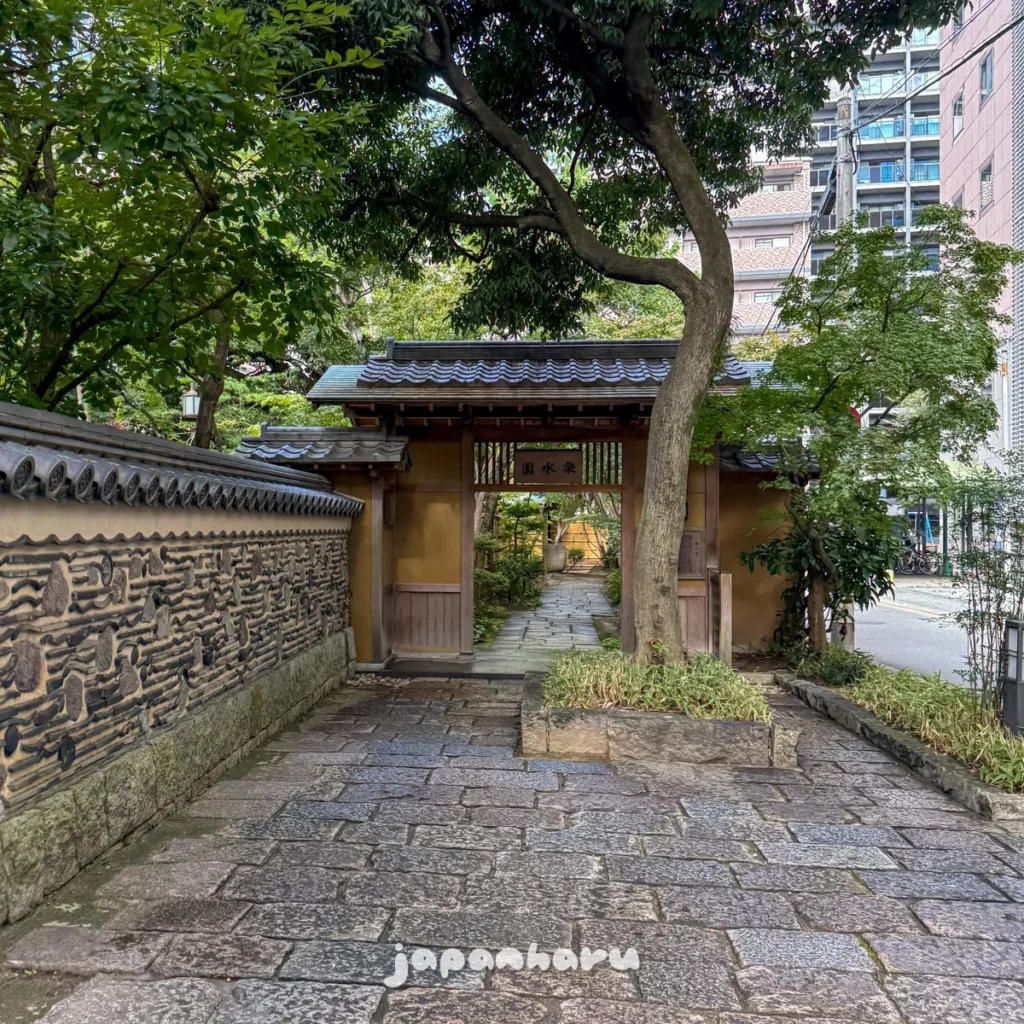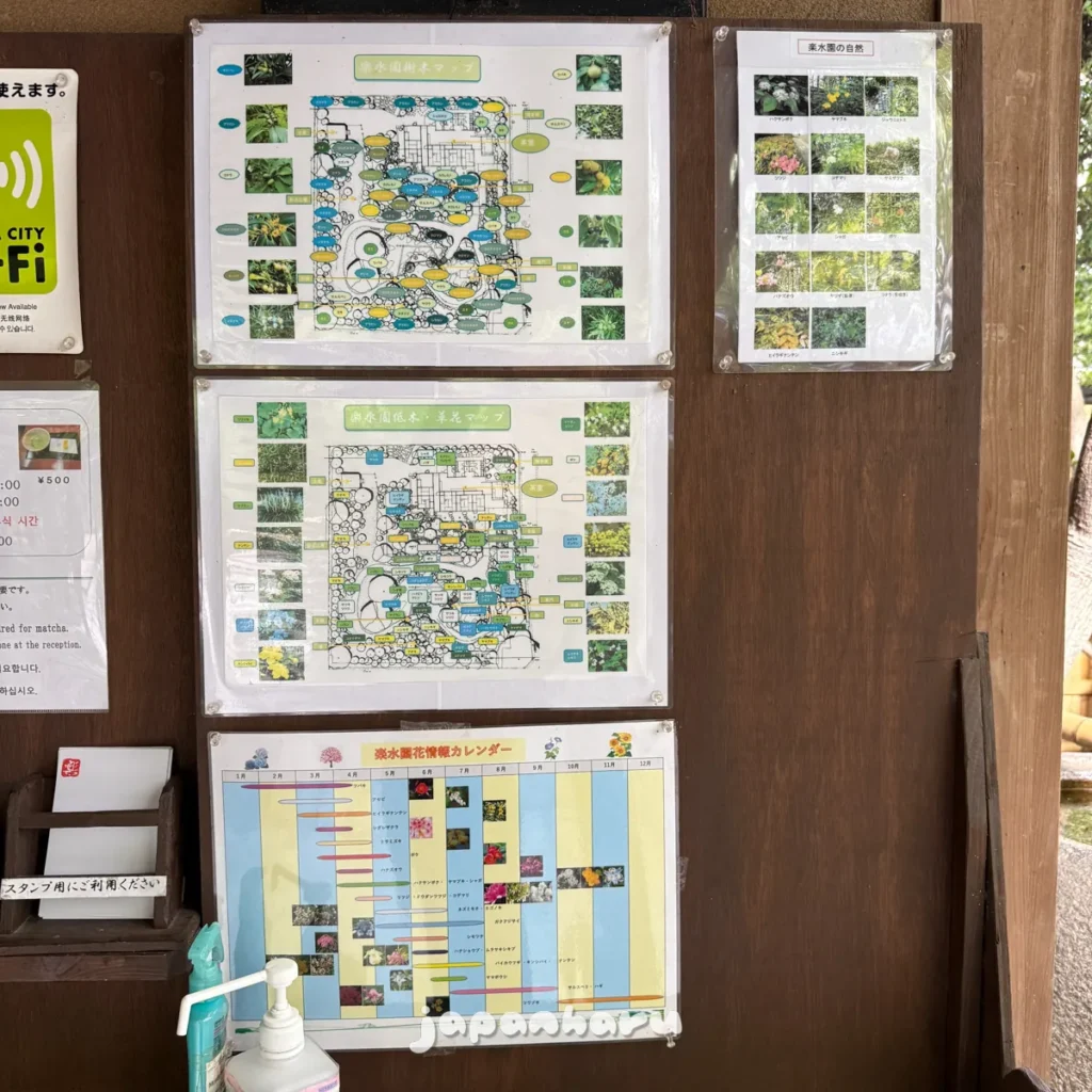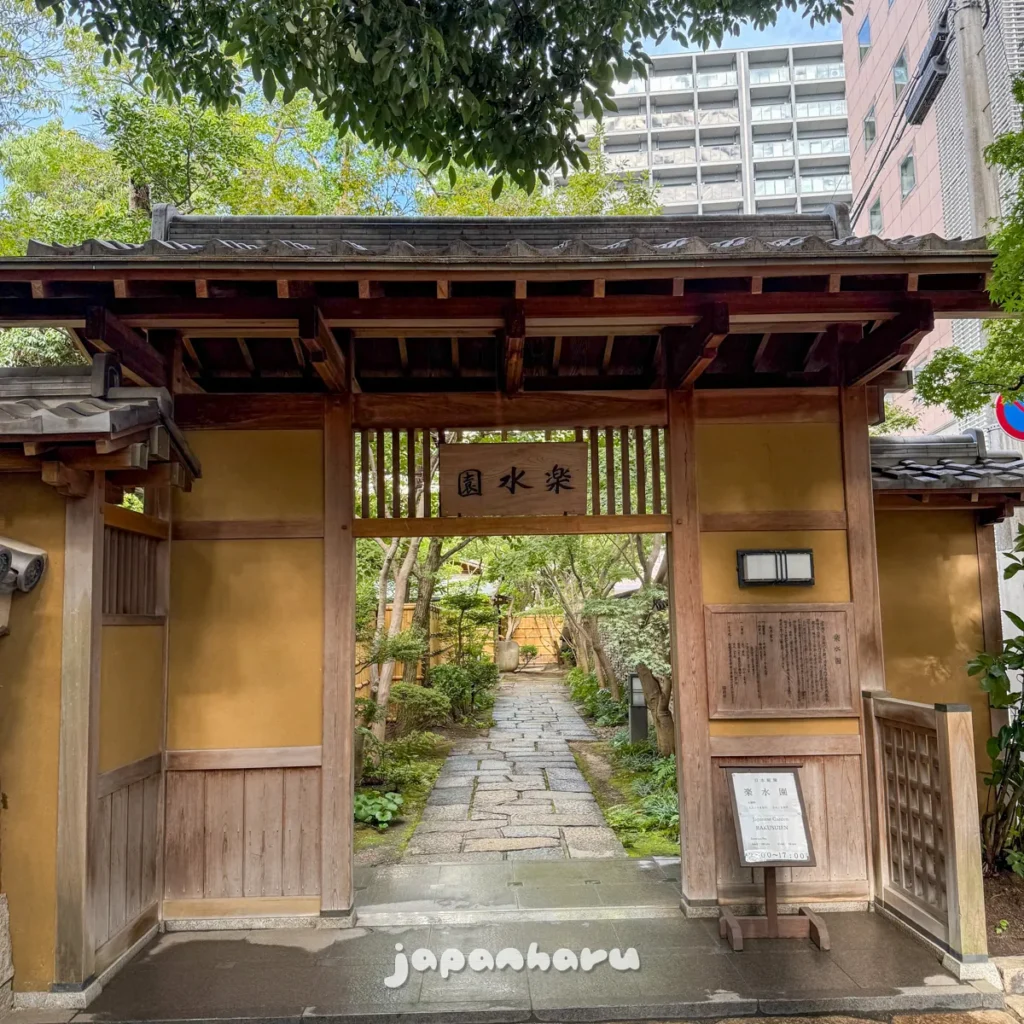 라쿠스이엔(楽水園)이라고 오른쪽부터 왼쪽으로 적혀있어요.