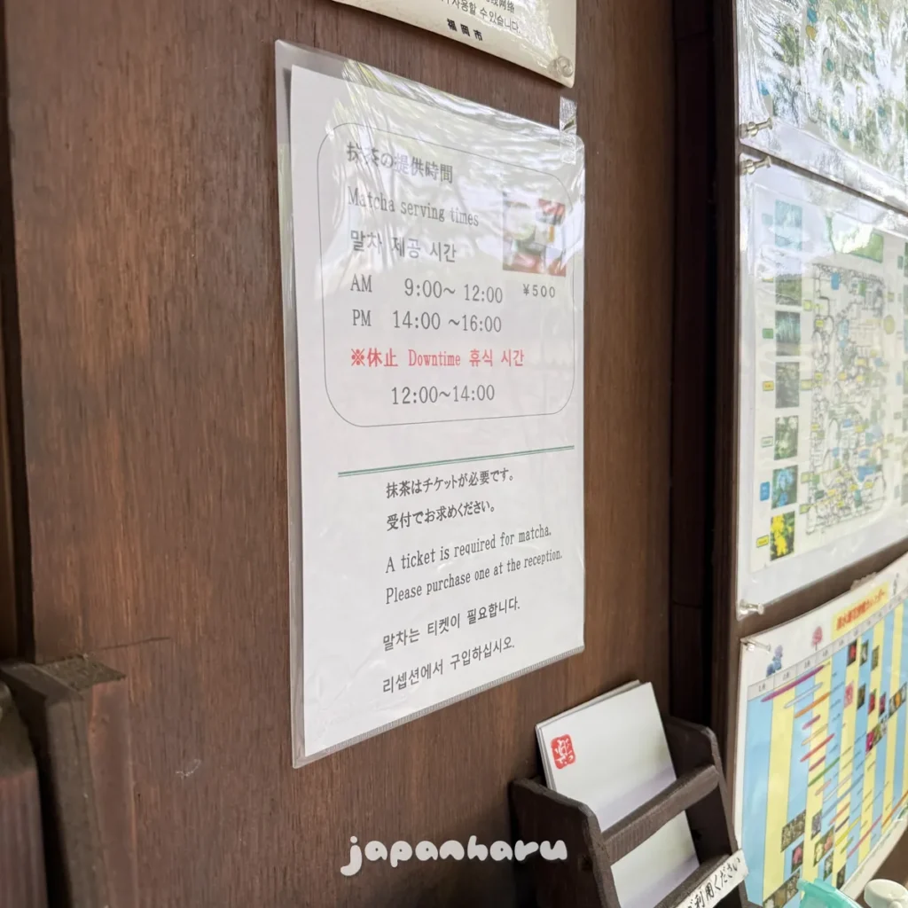 ‘온 김에 다 해보자’라는 생각으로 말차도 한 잔 하기 위해서 말차티켓도 하나 구입!(500엔)